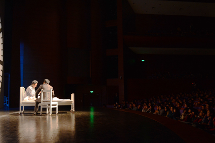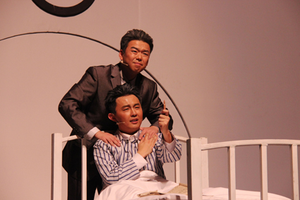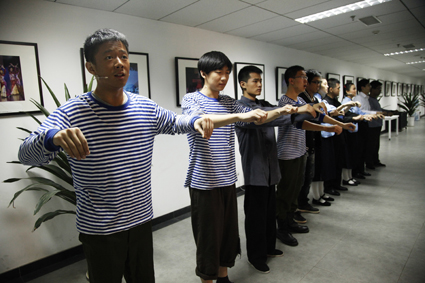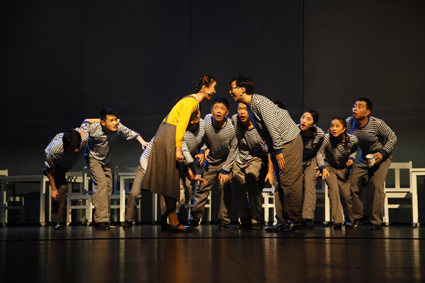推动景片的演员们在演出结束后谢幕。 高晓蕾 摄