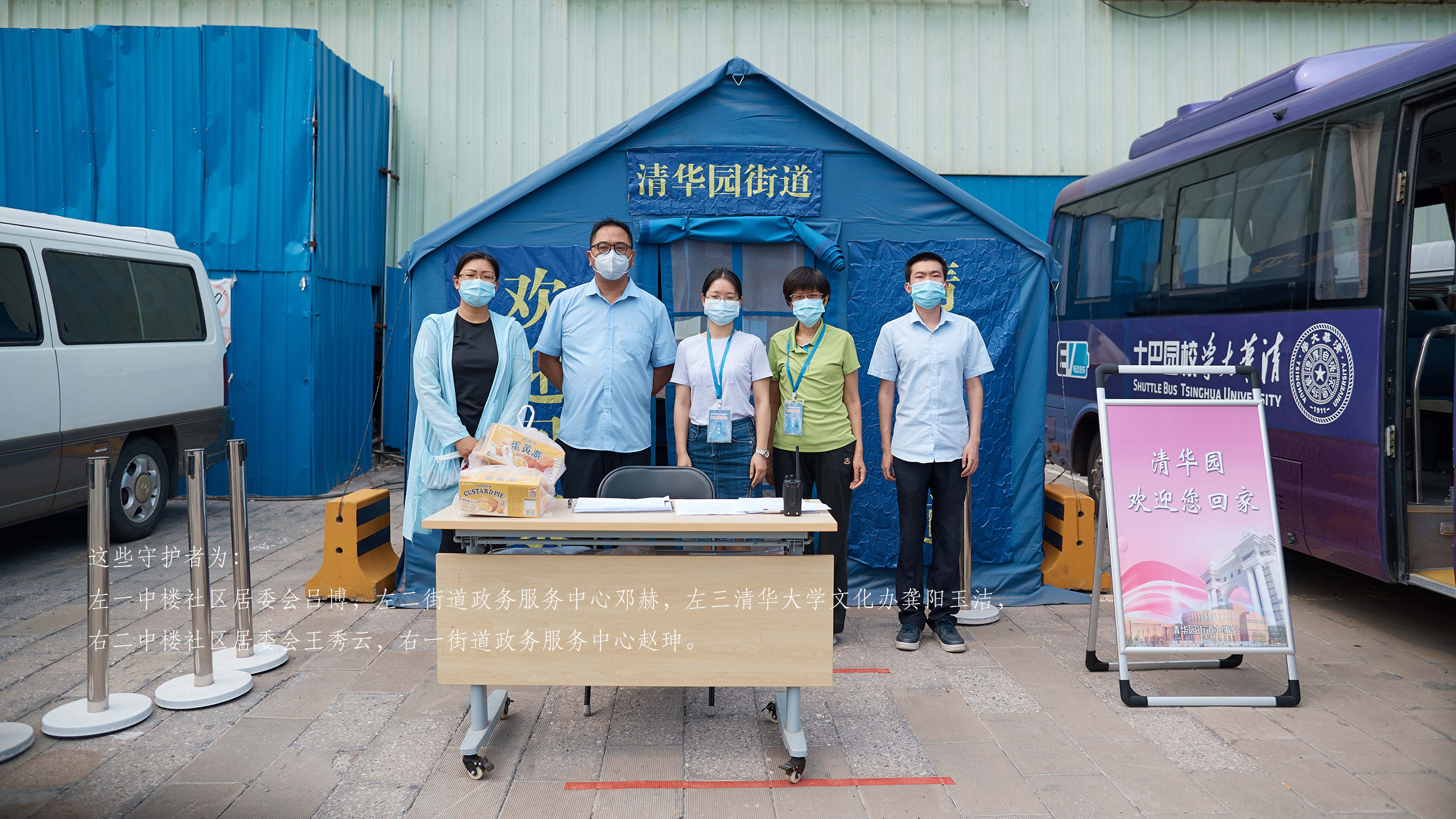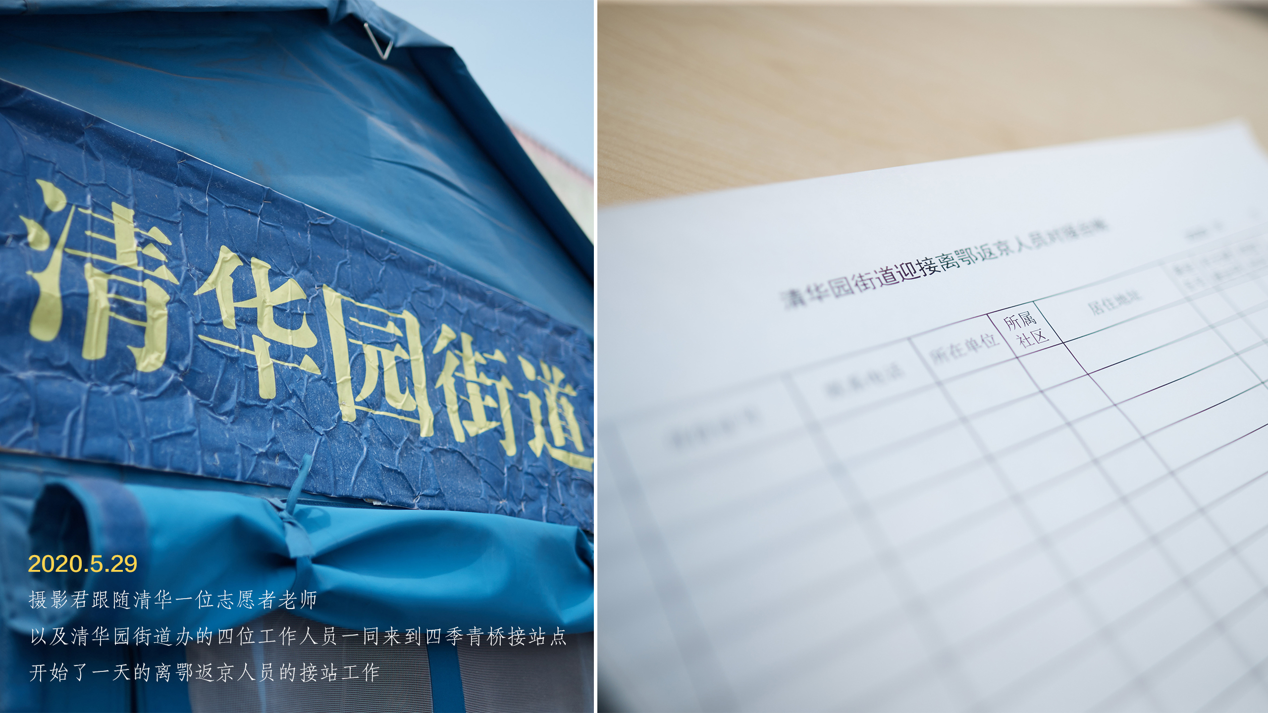5月29日,摄影君跟随清华园街道中楼社区居委会吕博、王秀云,街道政务服务中心邓赫、赵珅以及beat365中文官方网站文化建设办公室的志愿老师龚阳玉洁,一同去四季青桥接站点体验了一次离鄂返京人员的接站工作。