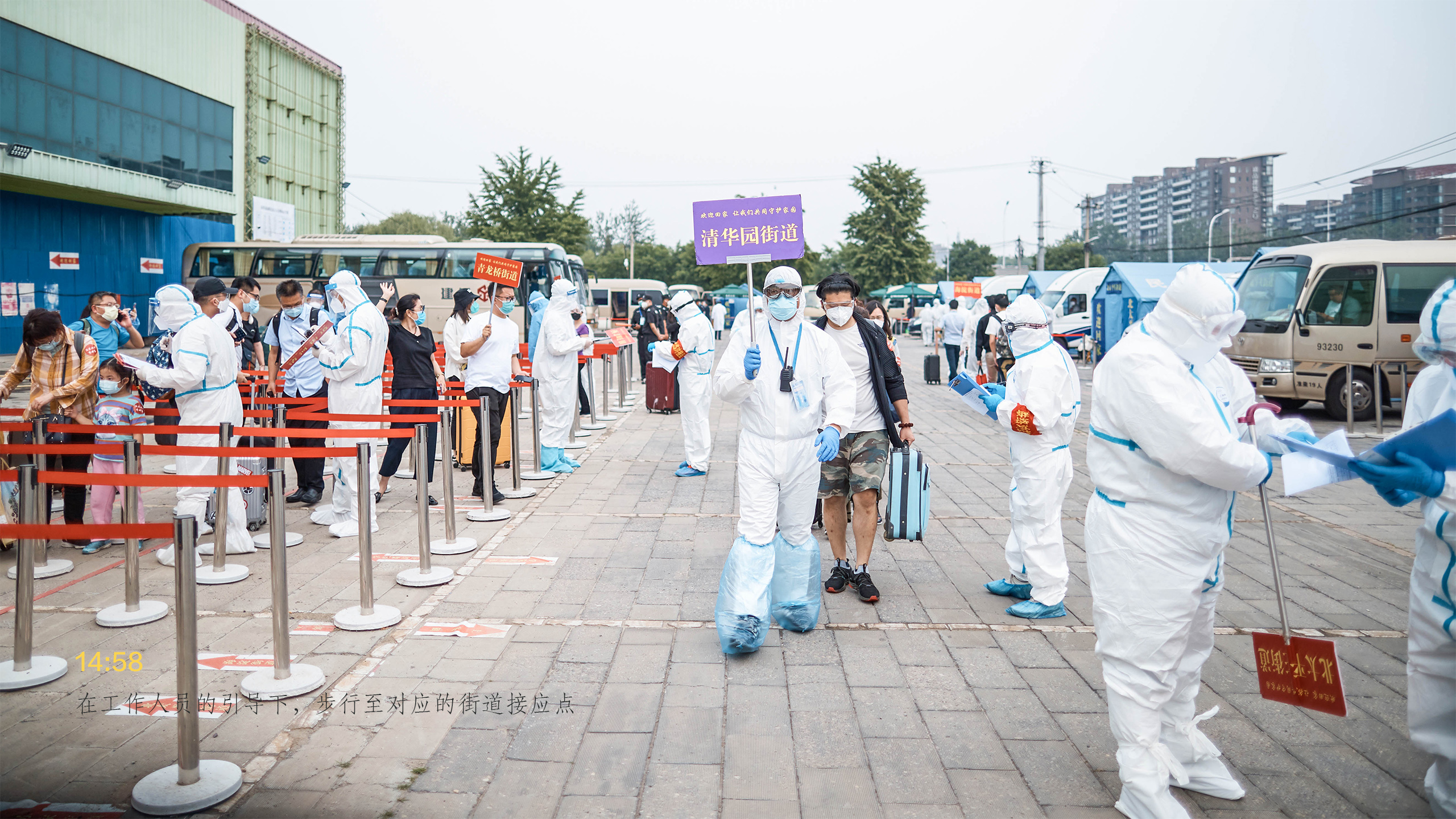 14:00 所有工作人员到达接站点,准备开始迎接14:41抵达的第一批返京人员。