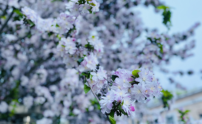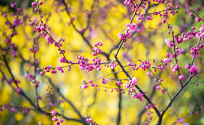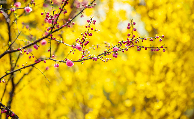 夭桃妆成,灿若烟霞蝶绕蜂怜,娉娉袅袅