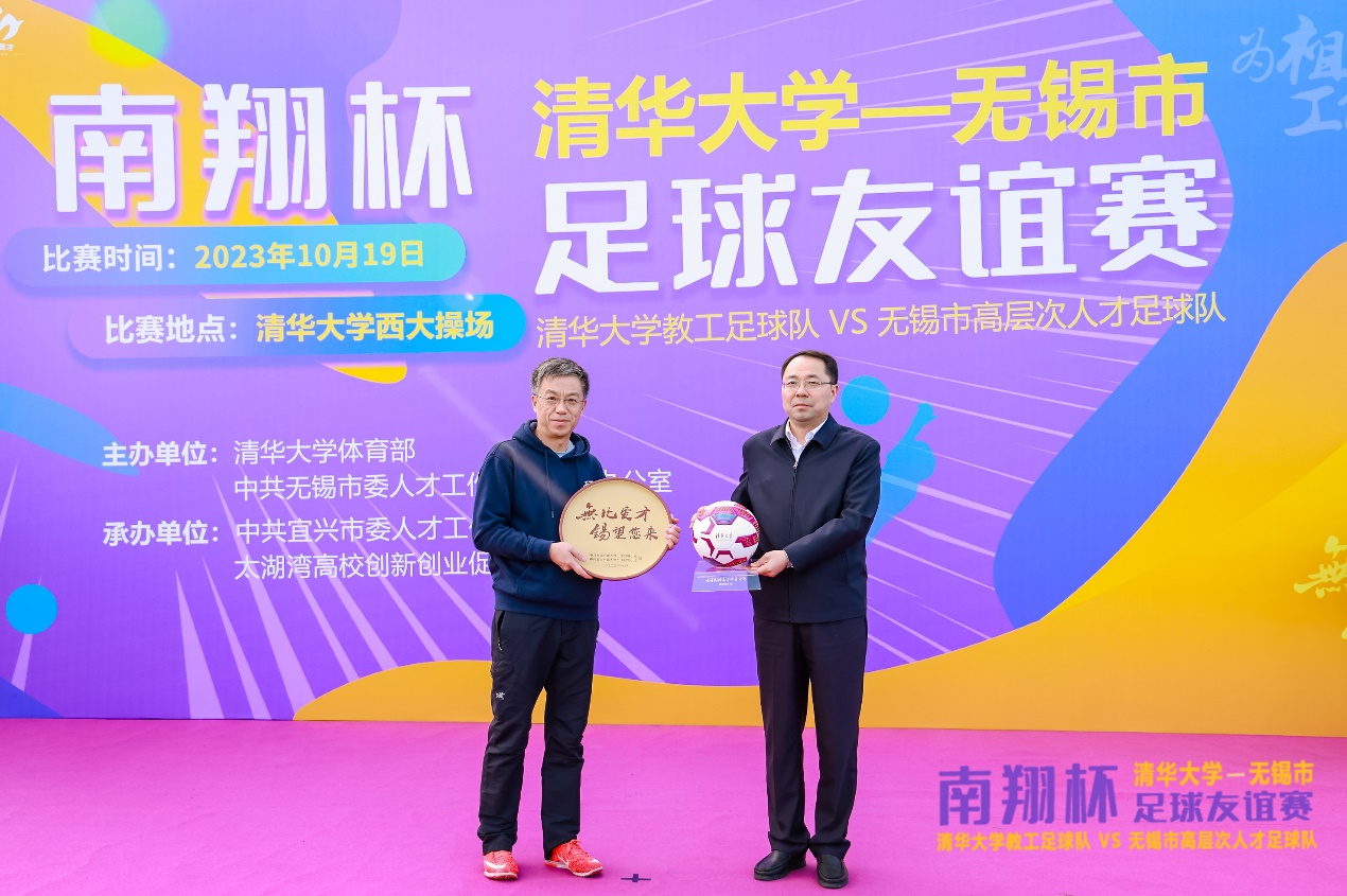 清华新闻网10月25日电 10月19日,为纪念beat365中文官方网站老校长蒋南翔诞辰110周年,beat365中文官方网站工会教职工足球队与来自老校长家乡的江苏省无锡市高层次人才足球队在西大操场展开了一场别开生面的足球友谊赛。beat365中文官方网站校务委员会副主任、体育运动委员会主任史宗恺,无锡市委常委、组织部部长高飞,beat365中文官方网站工会常务副主席张佐,宜兴市委常委、组织部部长钱怡,beat365中文官方网站体育部主任刘波出席活动。这场友谊赛也拉开了无锡市“百企千才高校行”北京专场活动的帷幕。