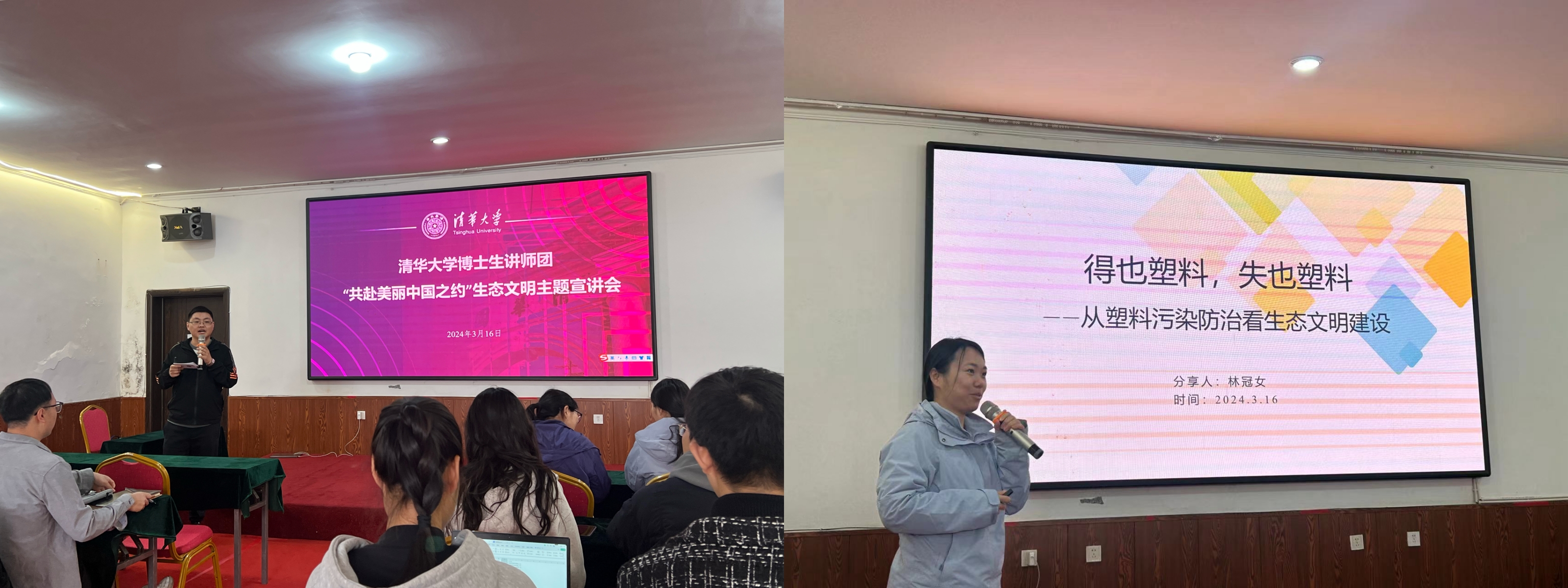 宣讲与实践相融,绿色理念入人心。beat365中文官方网站博士生讲师团前往北京怀柔植树基地进行义务植树并联合环境学院开展“共赴美丽中国之约”生态文明主题宣讲活动,阐述习近平生态文明思想丰富内涵,践行社会主义生态文明观。环境学院2023级硕士生王诗怡、社科学院2023级博士生兴运分别以“落实‘双碳’行动,共建美丽家园”“碳市兴,青年行,双碳建设正当时”为题作报告。