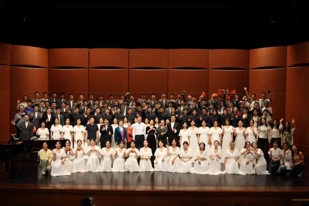 音乐会在《摇篮曲》悠远动人的旋律中拉开序幕。这首无伴奏混声合唱作品由2019级男低音特长生景雁南编配并指挥,一字一句,饱含着对东北家乡的思念与深情。上半场第一部分为景雁南改编的三首流行歌曲——《渔光曲》《一路花香一路唱》《我爱你中国》。其中,《一路花香一路唱》由1960级校友徐荣凯填词,1993级校友李健谱曲,展现了清华学子追求卓越、不畏风雨的精神。合唱的编配与演绎,为这些作品赋予了更加丰富的情感与意境。