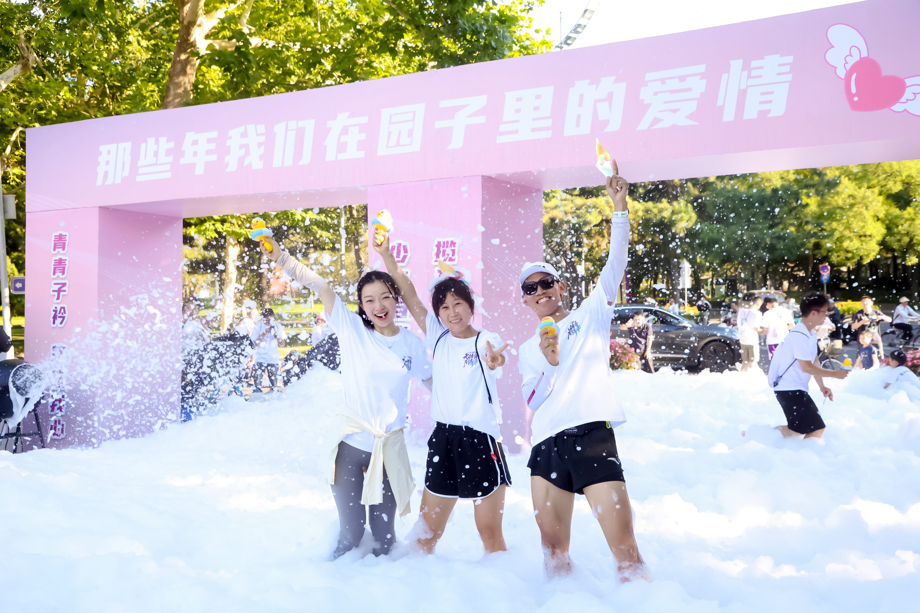 毕业生参加新清学堂前的缤纷泡泡跑
