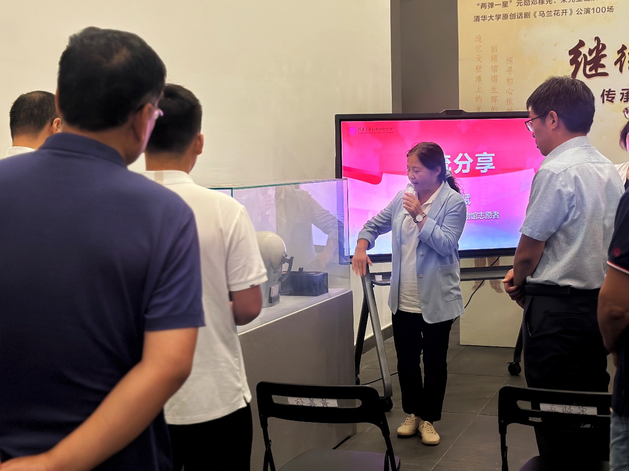 科学博物馆党支部书记范爱红介绍了此次展览的重要意义,这是科学博物馆与院系学生团队联手推出线下展览的首次尝试,希望展览能够激励青年学子回望峥嵘岁月,继承“两弹一星”精神,砥砺前行。