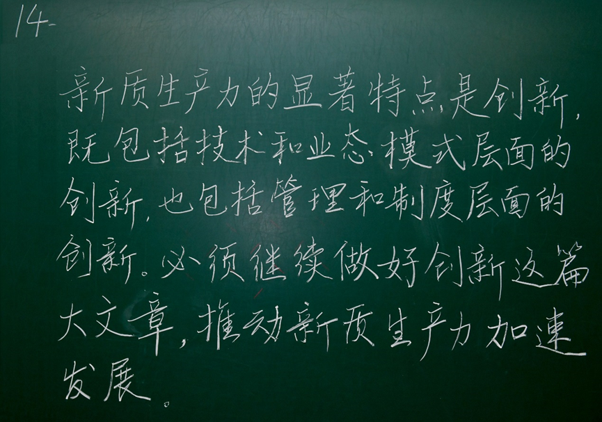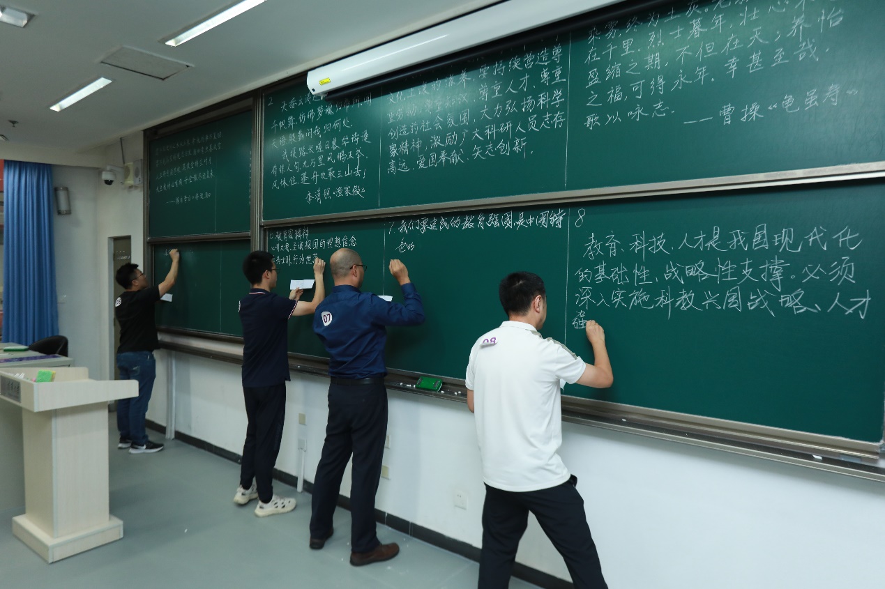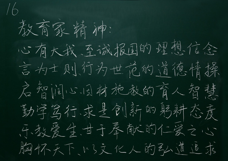 张佐表示,开展粉笔板书比赛是工会履职尽责、帮助教师提升教学本领的重要形式。“大力弘扬教育家精神,加快建设教育强国”承自今年的教师节主题,旨在展示鼓舞新时代高素质专业化教师队伍建设和教职工的精神风貌。未来,校工会将传承创新更多教职工喜闻乐见的文体活动,团结引领广大教职工以更加奋发有为的精神状态投身学校工作和教育强国建设实践。