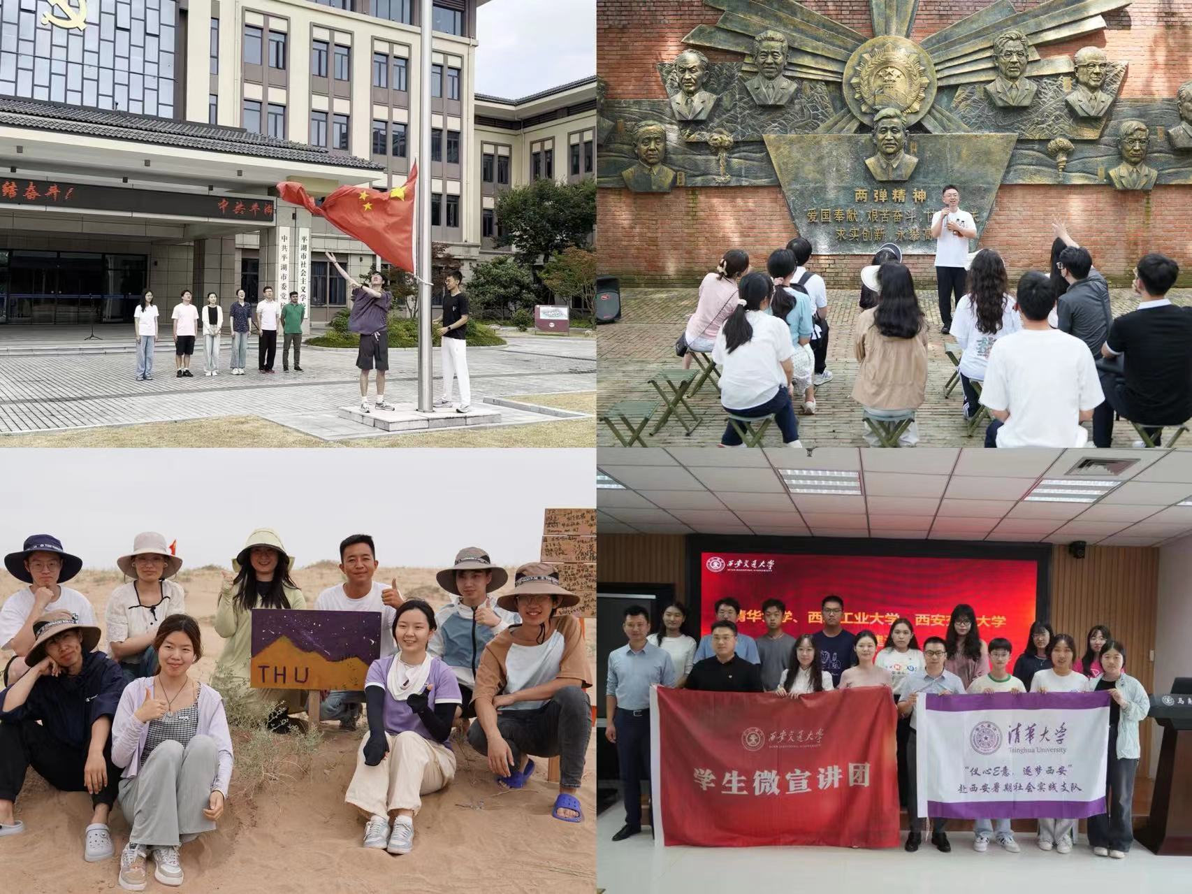 人文学院赴甘肃民勤实践支队前往腾格里沙漠开展“同绘一面红旗”治沙志愿服务,为近200棵梭梭树培土浇水,感悟习近平生态文明思想在祖国西北大地的生动实践。精仪系赴陕西西安实践支队联合地方高校的同学们举办“同讲一面红旗”联合宣讲活动,与现场师生就高校青年在推进新质生产力发展中的担当作为展开热烈讨论。