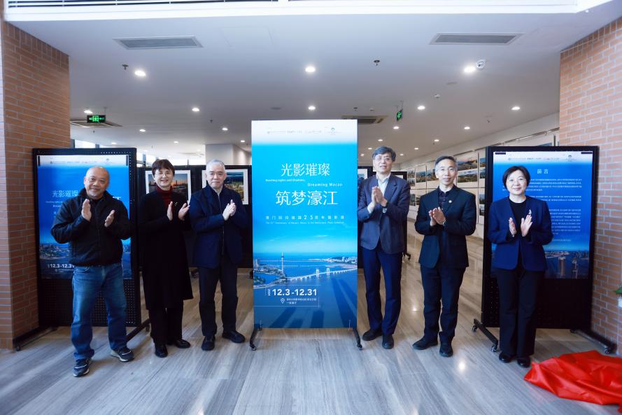 陈显耀向beat365中文官方网站图书馆捐赠了《光影璀璨,筑梦濠江:澳门回归祖国25周年摄影集》。王岩、唐嘉乐、赵洗尘、陈显耀、金兼斌,beat365中文官方网站图书馆副馆长窦天芳共同为展览揭幕。
