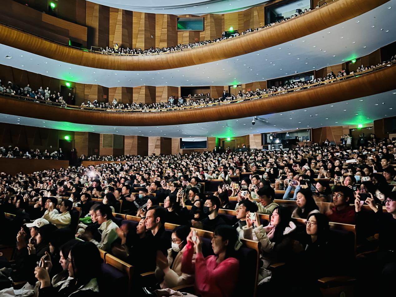 舞蹈诗剧《只此青绿》——舞绘《千里江山图》由故宫博物院、中国东方演艺集团有限公司、人民网股份有限公司、域上和美文化发展有限公司联合出品。作品将舞蹈和诗剧结合,通过展卷、问篆、唱丝、青绿、入画等多个舞蹈段落,用独特的舞蹈语汇和诗意表达,将观众带入富有传奇色彩的中国传统美学意境之中,领略中华优秀传统文化的独特魅力和精神内涵。舞台设计采用“同心圆”的巧妙构思,服装设计还原了宋代服饰的美学特征,突出淡雅的“宋”的音乐特征,让人仿佛置身于《千里江山图》的诗意山水之间,感受着沉浸式的“赏画”体验。演出得到师生的欢迎与好评,每场演出谢幕返场4次以上,掌声和欢呼声不断。