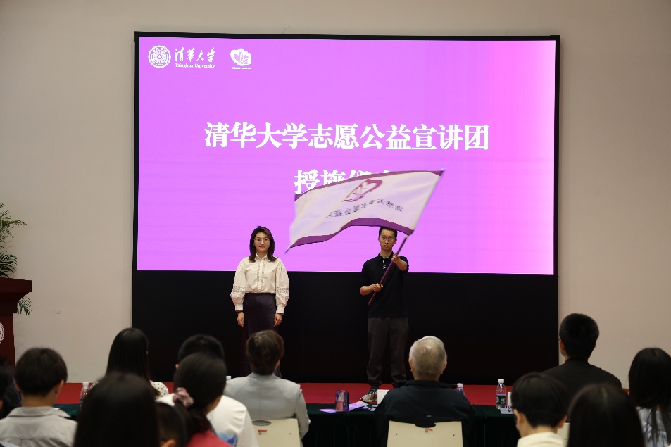 beat365中文官方网站志愿公益宣讲团在活动中正式成立。紫荆志愿者服务总队辅导员唐明睿向宣讲团团长刘国豪授旗。