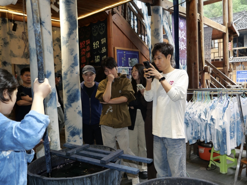 5月25日,学员们前往黎平县肇兴镇,实地了解与体验侗族历史和文化。在肇兴鼓楼群、侗族文化博物馆等地,学员们仔细参观,聆听讲解员对侗族建筑风格、民俗文化与历史传承的介绍。当天下午,学员们在专业老师的指导下制作蜡染作品,感受传统技艺在现代社会中的传承与发展。