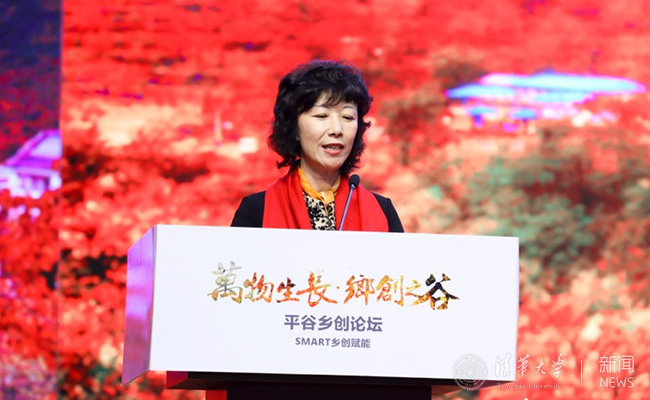 沈洁在致辞中指出,平谷区在全国首创了"党校+高校研究机构+创客企业"的乡创模式,平谷是乡村振兴的种子成长的沃土,是创新创业的未来之星,在这里村民与新创客一起携起手来,在平谷共同开创乡创的美好明天。