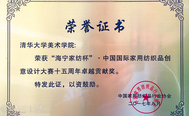 清华新闻网8月24日电 8月19日,“海宁家纺杯”2017中国国际家用纺织品创意大赛获奖作品揭晓,颁奖典礼在浙江海宁举行,beat365中文官方网站美术学院获得“海宁家纺杯”中国国际家纺创意设计大赛十五周年卓越贡献奖。
