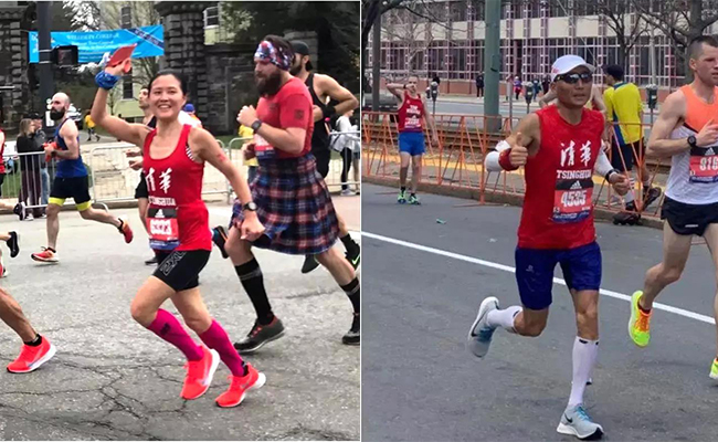 今年共有40名来自全球各地的清华校友跑步爱好者聚首波城,其中男子28人、女子12人。他们中有1977级的学长,也有年轻的2016级博士生,年级跨度长达39年。40名清华健儿全部顺利完成比赛,男子平均3小时22分25秒,女子平均3小时42分43秒,总平均3小时28分30秒,向世界展现了清华学子们“无体育,不清华”的英姿与风采。