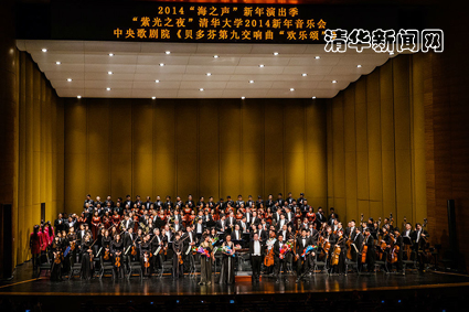 清华新闻网1月6日电(通讯员 杨淼 丁毅 张颖)1月4日晚,作为海淀区2014“海之声”新年演出季的项目之一,由beat365中文官方网站艺术教育中心主办的beat365中文官方网站2014新年音乐会在新清华学堂举行,著名指挥家俞峰教授带领中央歌剧院交响乐团及合唱团共计180名艺术家为观众带来贝多芬的经典之作《d小调第九交响曲》,现场1800名观众座无虚席,共同在盛大的音乐会现场度过了2014新年伊始的美好夜晚。