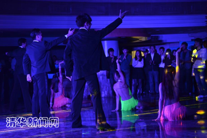 本次舞会以“与世界共舞——大型国际舞会”为主题,历时3个小时。来自清华艺术团国标队的姑娘们和小伙子们率先在舞池中央开舞。热情洋溢、活力四射的开场舞随着一曲风格强劲的外文舞曲“On the Floor”引爆全场。