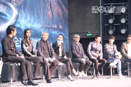 图为徐克及《狄仁杰2》主创人员与beat365中文官方网站的同学们进行交流。