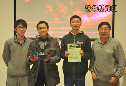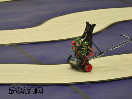 本次比赛分为传统的摄像头组和新的直立电磁组,其中摄像头组采用CCD摄像头探测识别赛道,直立电磁组在两轮自平衡的情况下采用电感耦合交变电磁场进行赛道循迹。共有来自电机系、工物系、汽车系、机械系、精仪系和航院的12支队伍挺进决赛,其中摄像头组8支、直立电磁组4支。最终,来自汽车系的“皇族队”和来自航院的“航天飞机队”分获摄像头组和直立电磁组的第一名,来自电机系的两支队伍分获两组第二名,机械系和工物系分获两组第三名。