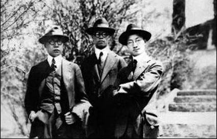 张奚若(中)与徐志摩(右)、金岳霖(左)在美国哥伦比亚大学合影 (张文朴 提供)
