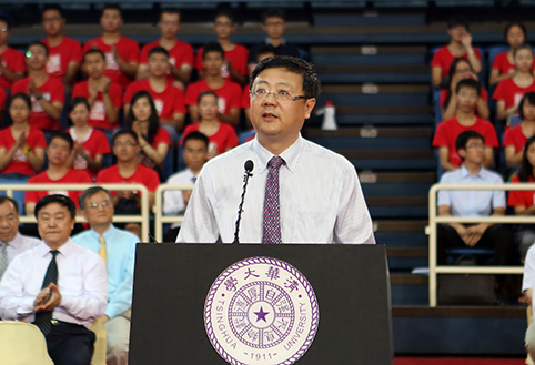 图为陈吉宁校长在本科生开学典礼上讲话。记者 智 斐 摄