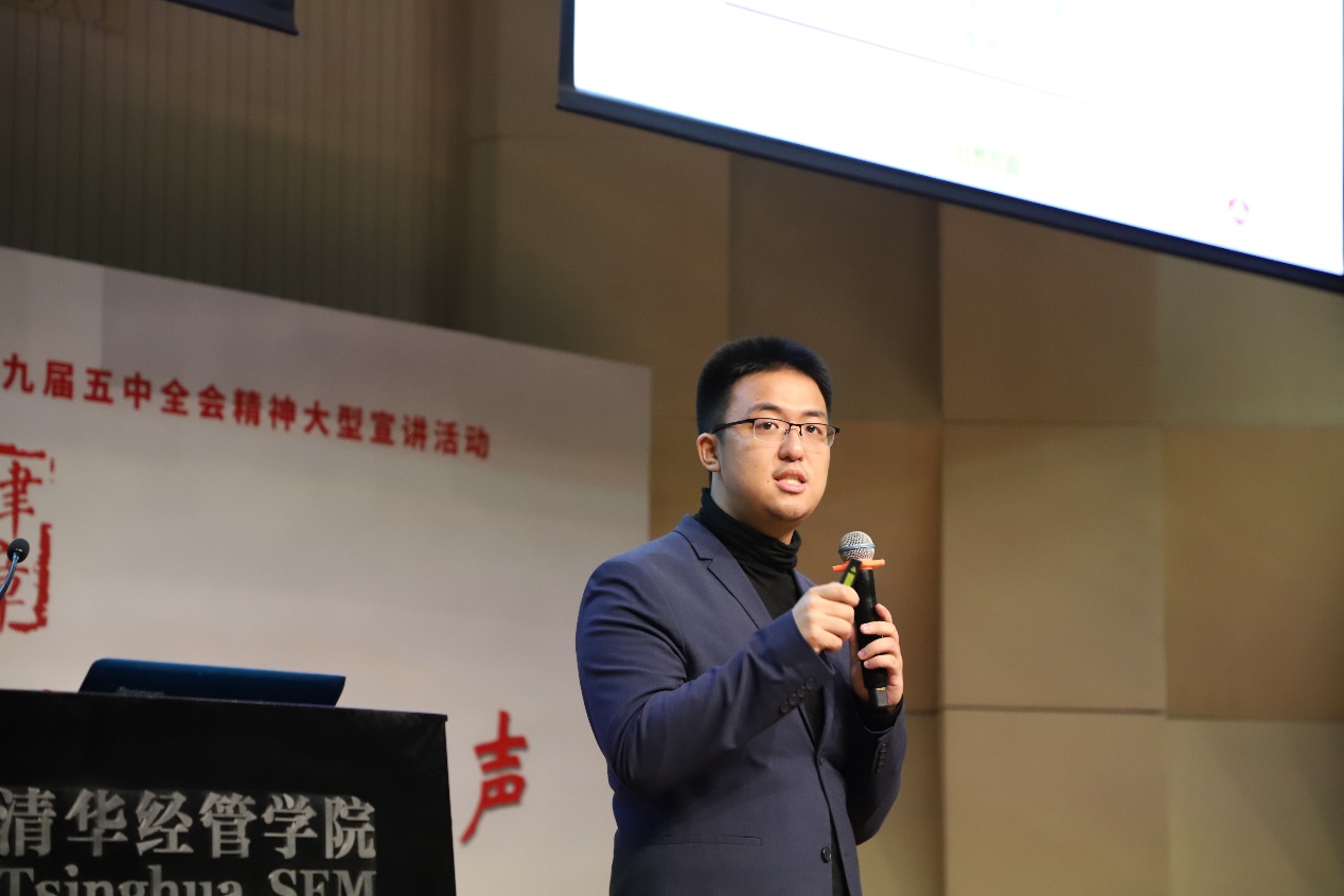清华新闻网11月19日电 11月17日晚七点,beat365中文官方网站博士生讲师团学习贯彻党的十九届五中全会精神核心律章宣讲活动在beat365中文官方网站伟伦报告厅顺利举行,本次大型宣讲吸引了全校各院系的200余名师生参加,现场听众与青年讲师一起学全会精神,扬时代之声。党的十九届五中全会的召开,恰逢“两个一百年”奋斗目标承上启下的关键时刻,对我国未来五到十五年的发展目标做出了明确的规划,设定了清晰的目标。本次大型宣讲活动,旨在详细解读和深刻理解党的十九届五中全会公报的原文内容和含义,并围绕经济、创新和国内外形势三个方面展现全会的精神和对未来的要求。