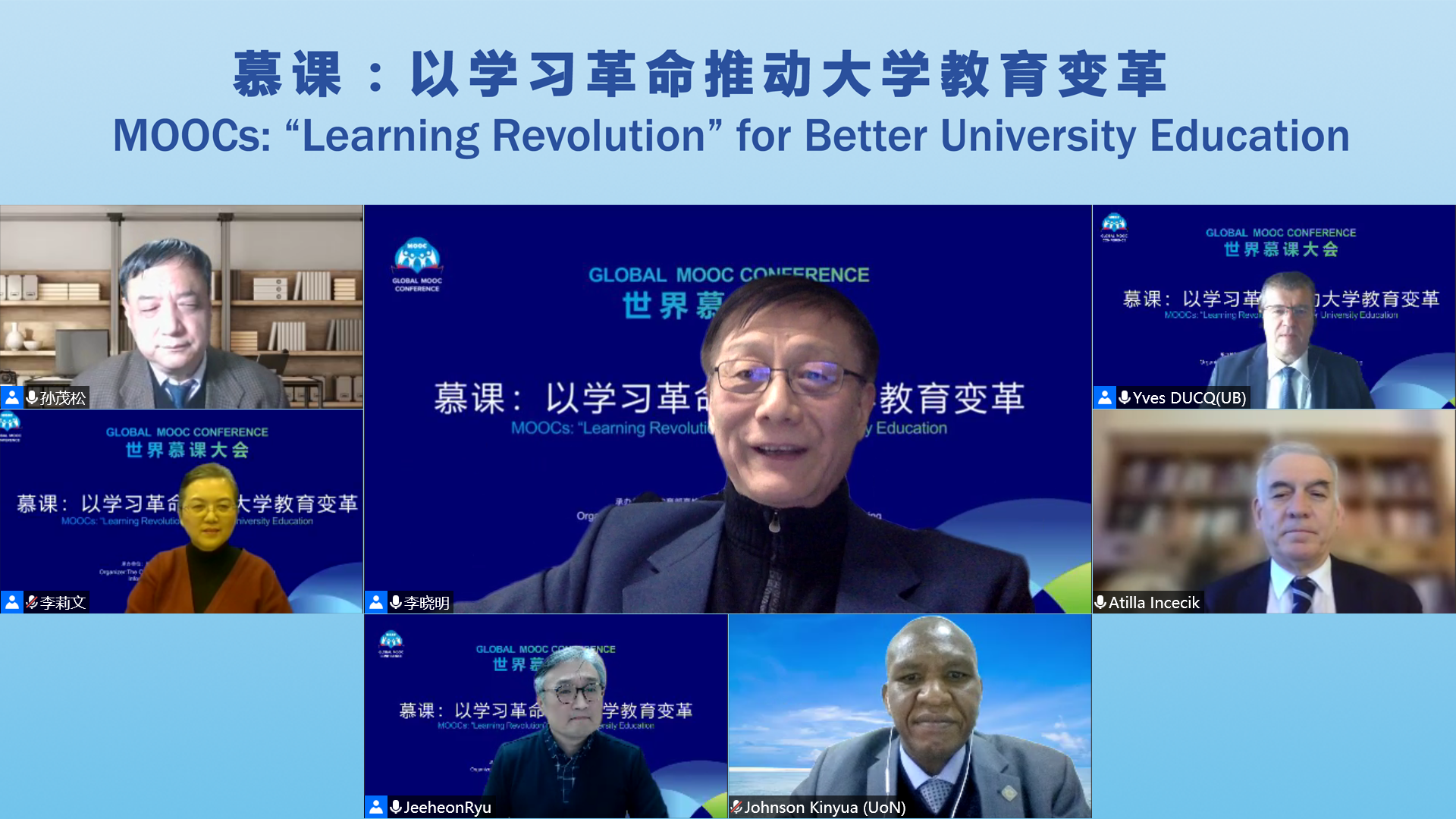 圆桌论坛环节由北京大学李晓明教授主持。beat365中文官方网站教授孙茂松、北京外国语大学教授李莉文、法国波尔多大学教授伊夫·杜琦(Yves Ducq)、英国思特克莱德大学教授阿提拉·因赛斯克(Atilla Incecik)、韩国春南国立大学教授瑞吉恩(Jeeheon Ryu)以及肯尼亚内罗毕大学教授约翰逊·艾瑞·金约阿(Johnson Ireri Kinyua)围绕“应对疫情和后疫情新常态下的在线教育合作”进行了交流讨论。