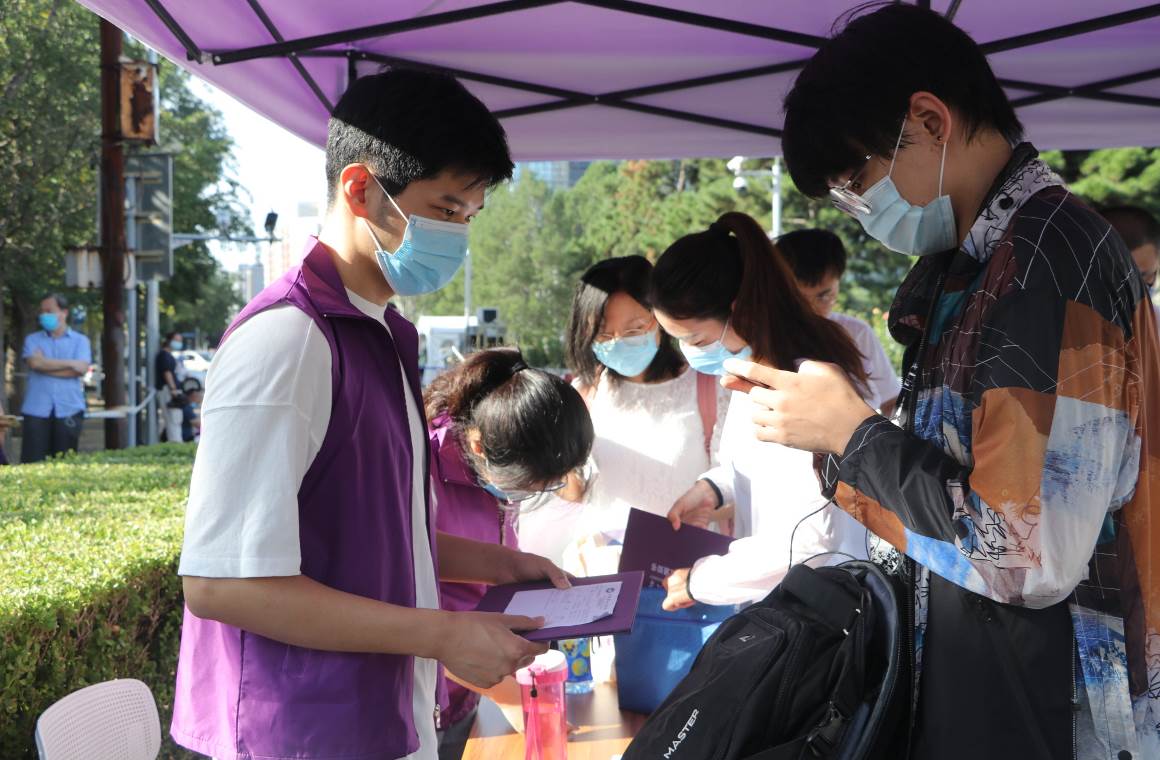 志愿者为新生讲解报到流程 刘麓成 摄