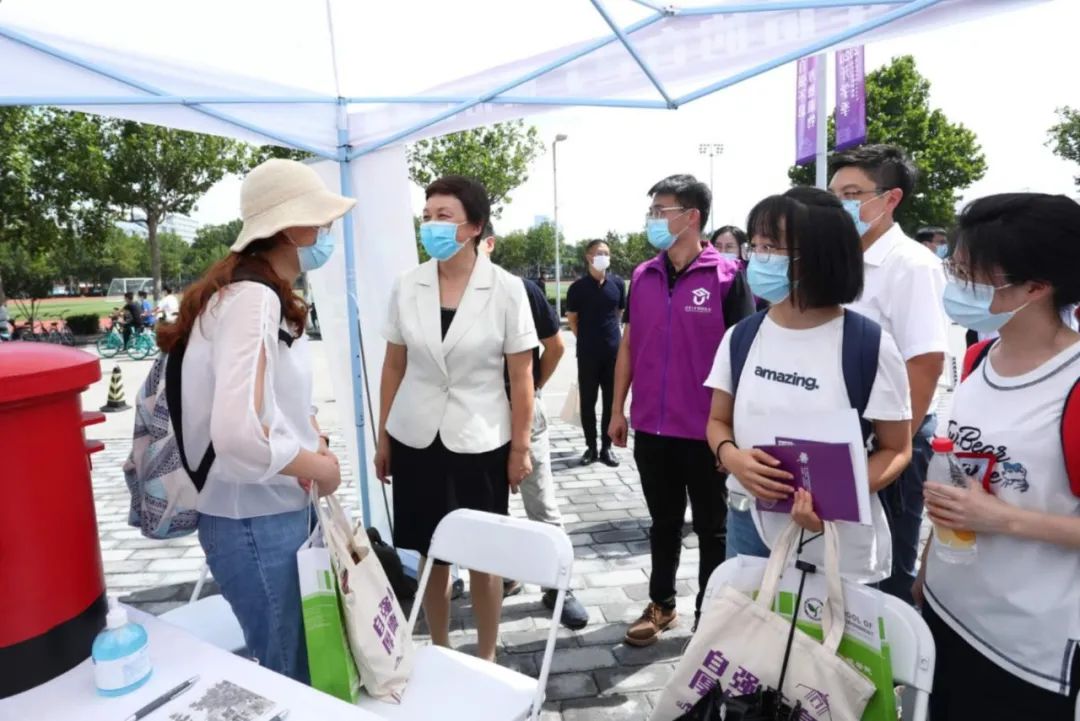 在人文学院迎新点,邱勇倾听新生的入学感受
