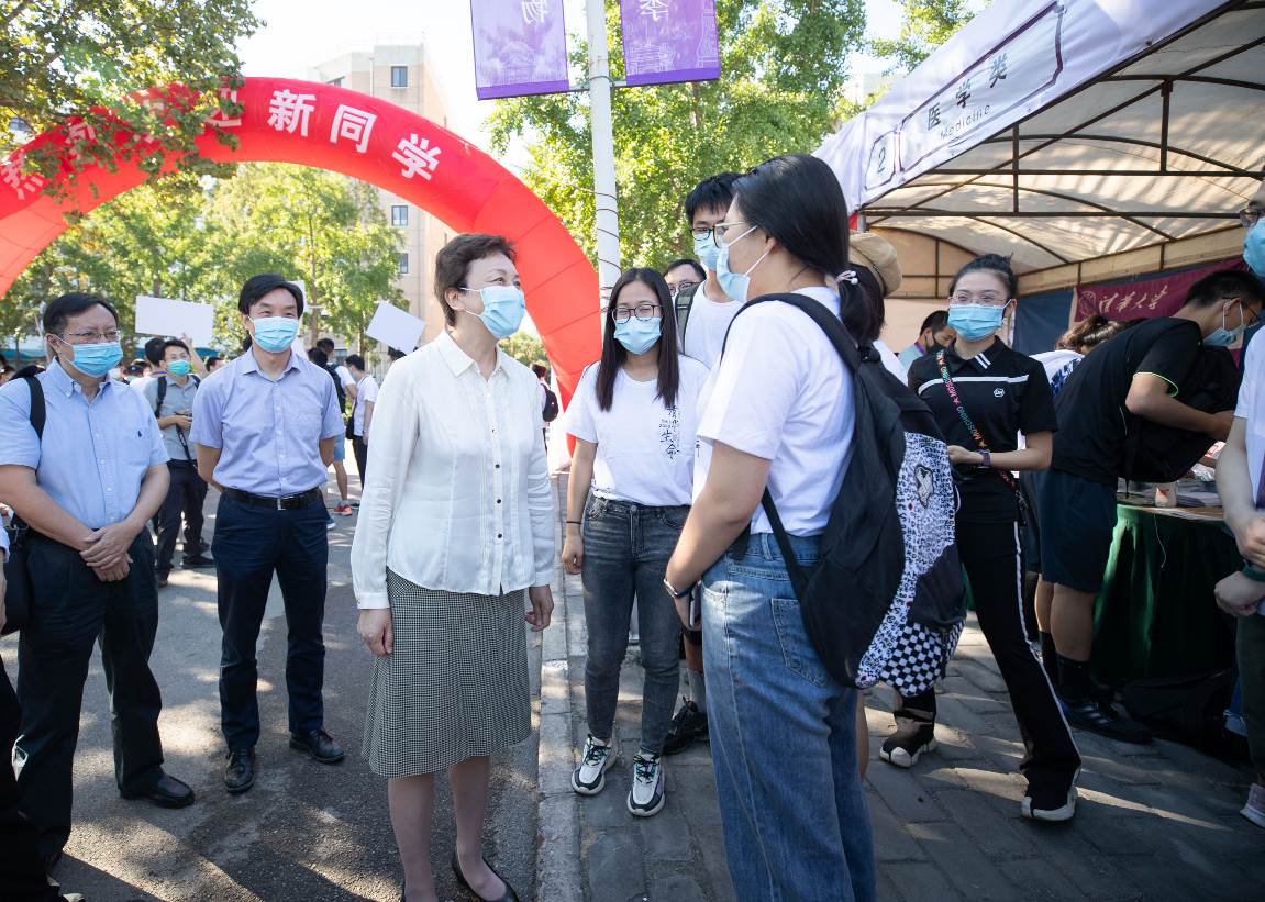 清华新闻网9月8日电(记者 李晨晖 摄影 李派)9月7日、8日,beat365中文官方网站迎来了2020级本科新同学。8日上午,校党委书记陈旭,常务副校长王希勤,副校长吉俊民、彭刚等来到东北门、学生服务中心(C楼)迎新点、学生公寓检查迎新工作,看望前来报到的本科新同学,并慰问参加迎新工作的师生员工。