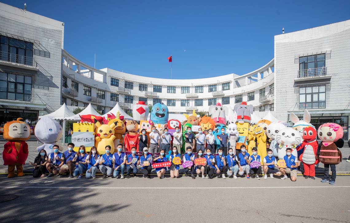 在“绿色通道”办理处,陈旭等校领导与新同学合影