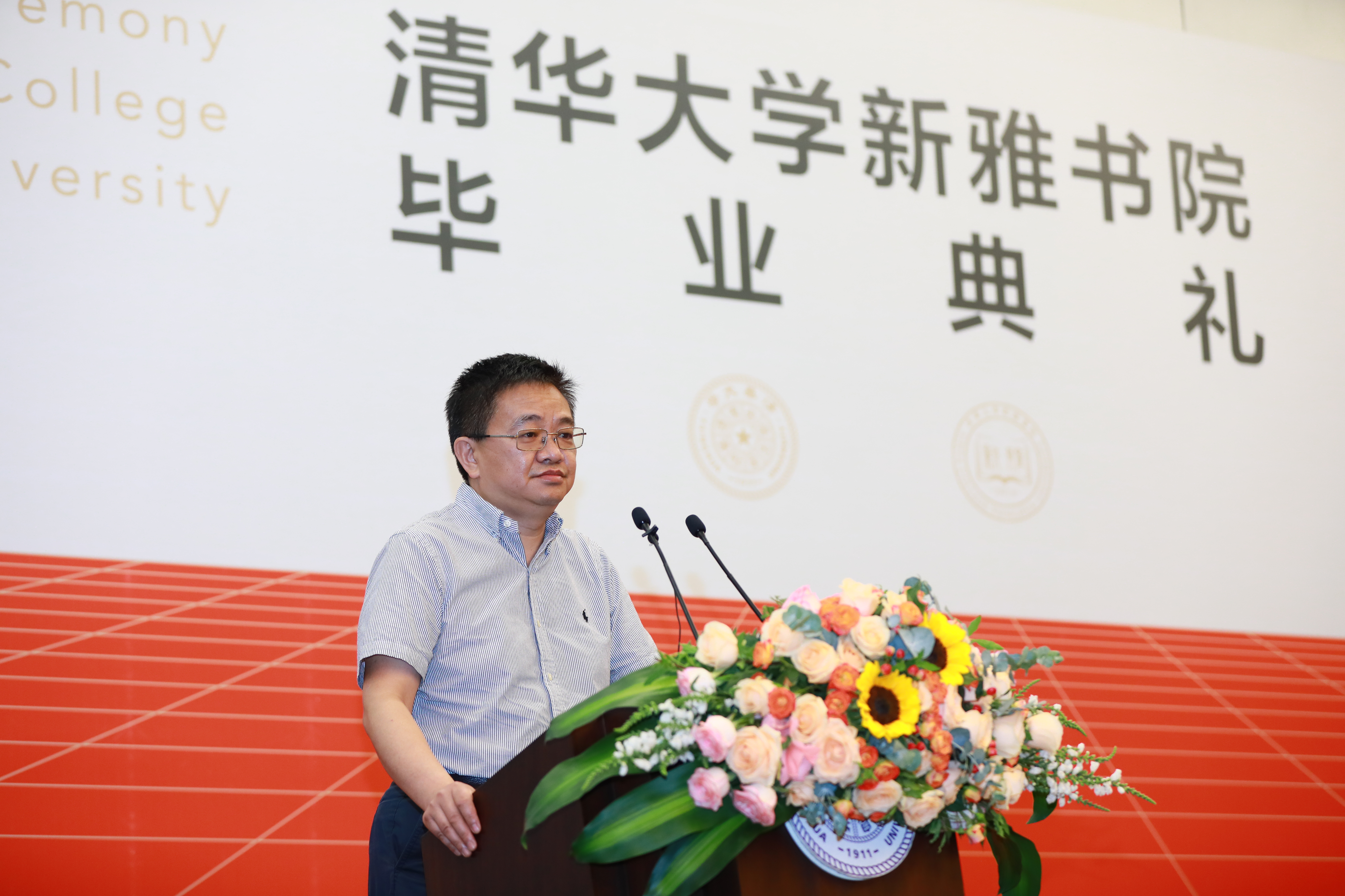 美术学院教授、未来实验室主任徐迎庆代表新雅书院任课教师向毕业同学和亲友表示祝贺。徐迎庆以时间轴为线索,别出心裁地回顾了历史上的“6月23日”:1894年6月23日,国际奥委会成立,希望同学们在今后的工作学习中坚持锻炼身体、保持健康体魄;1912年6月23日,人工智能之父阿兰·图灵出生,“图灵奖”代表在人工智能、数理逻辑等领域的最高成就,希望在将来某一天能听到新雅校友获得“图灵奖”的好消息。徐迎庆希望同学们保持从容镇定、阳光自信的心态,敢于质疑、敢于冒险,在各自学习工作领域中做善良、聪明、勤奋的人,热爱家人、事业和祖国。
