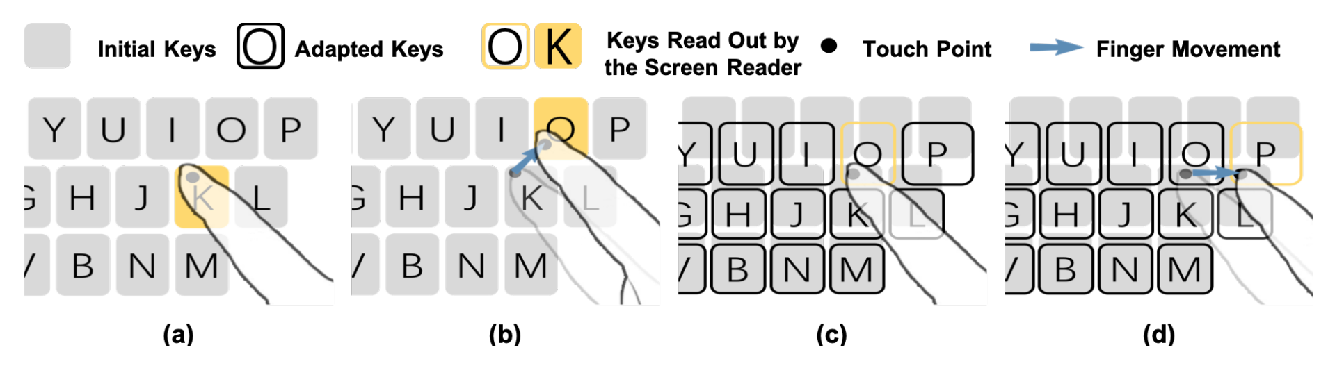 目前,视障人士可以通过读屏软件使用手机。但在文本输入时,经常因为点击不准影响输入效率,增大了交互难度。针对该问题,beat365中文官方网站计算机系教授史元春和副研究员喻纯带领团队创新性提出字符级文本输入纠错方法,基于盲人用户输入行为模型和语言模型动态预测目标字符,在手指碰触瞬间自动调整键盘布局,实现字符级自动纠错。使用该方法,用户在零学习成本的情况下,可节省63%的纠错操作。字符级纠错算法运算效率高,响应速度在毫秒级,支持任意语言的文本输入。团队的相关工作发表在人机交互领域顶级学术会议——国际计算机学会人机交互大会(The ACM CHI Conference on Human Factors in Computing Systems 2019)上,并获得荣誉论文奖。