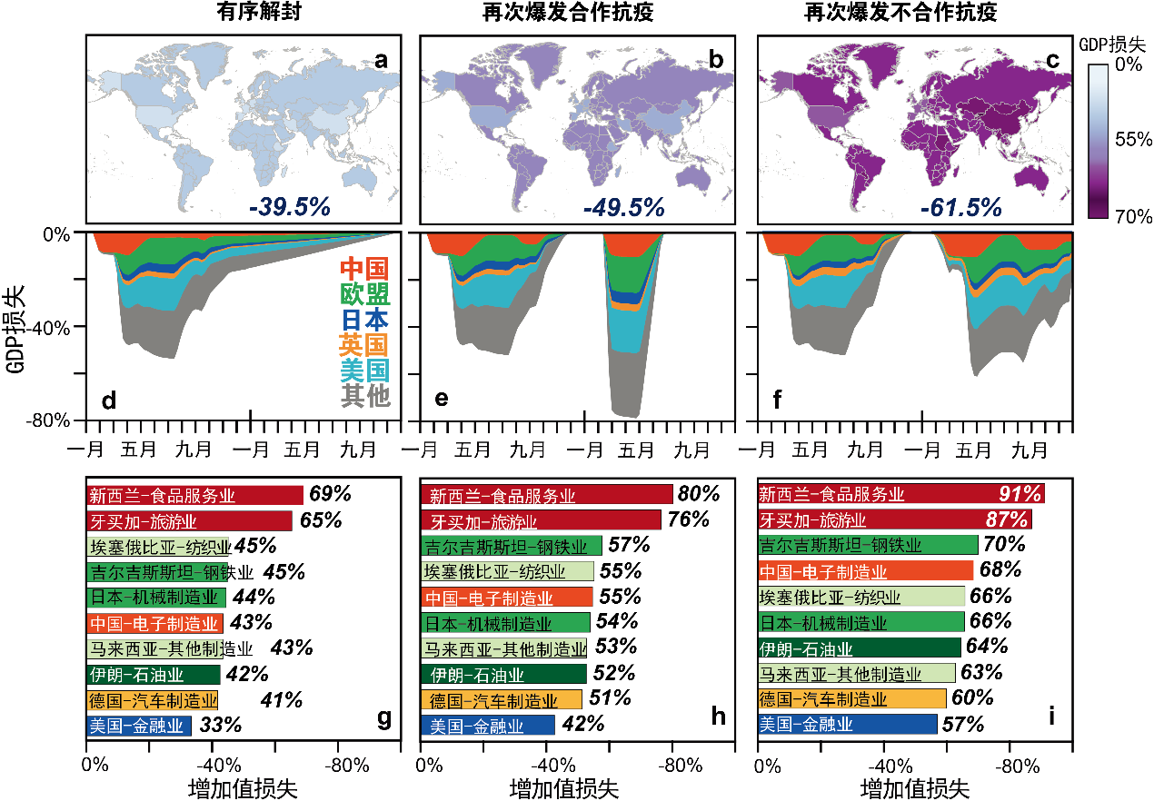 图1 不同防控措施情景下新冠肺炎疫情对全球经济的影响(增加值损失)