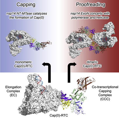 该成果揭示了新冠病毒转录复制机器的完整组成形式,明确了病毒mRNA加帽的分子机制,提出了新冠病毒逃逸核苷类药物的机制,发现了新的抑制剂作用靶点,为发展和优化抗病毒药物提供了关键的结构基础。