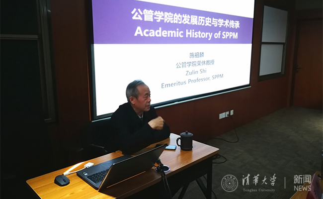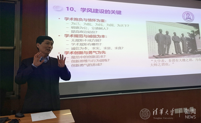 施祖麟讲授了公管学院的历史与学风传承。他指出,纵观建院历史,公管学院的发展与国家需求的变化是紧密结合的。在学院快速发展的过程中,学风是每个清华人必须要传承和发扬的优良传统。他强调,学风建设不是抽象的,是具体的,是做人的本分。考试不要作弊、写文章不要抄袭、引用别人的东西必有出处,这就是优良学风在生活中的基本体现。作为一个清华人,学风建设应该不止于此,应该有更高的要求。