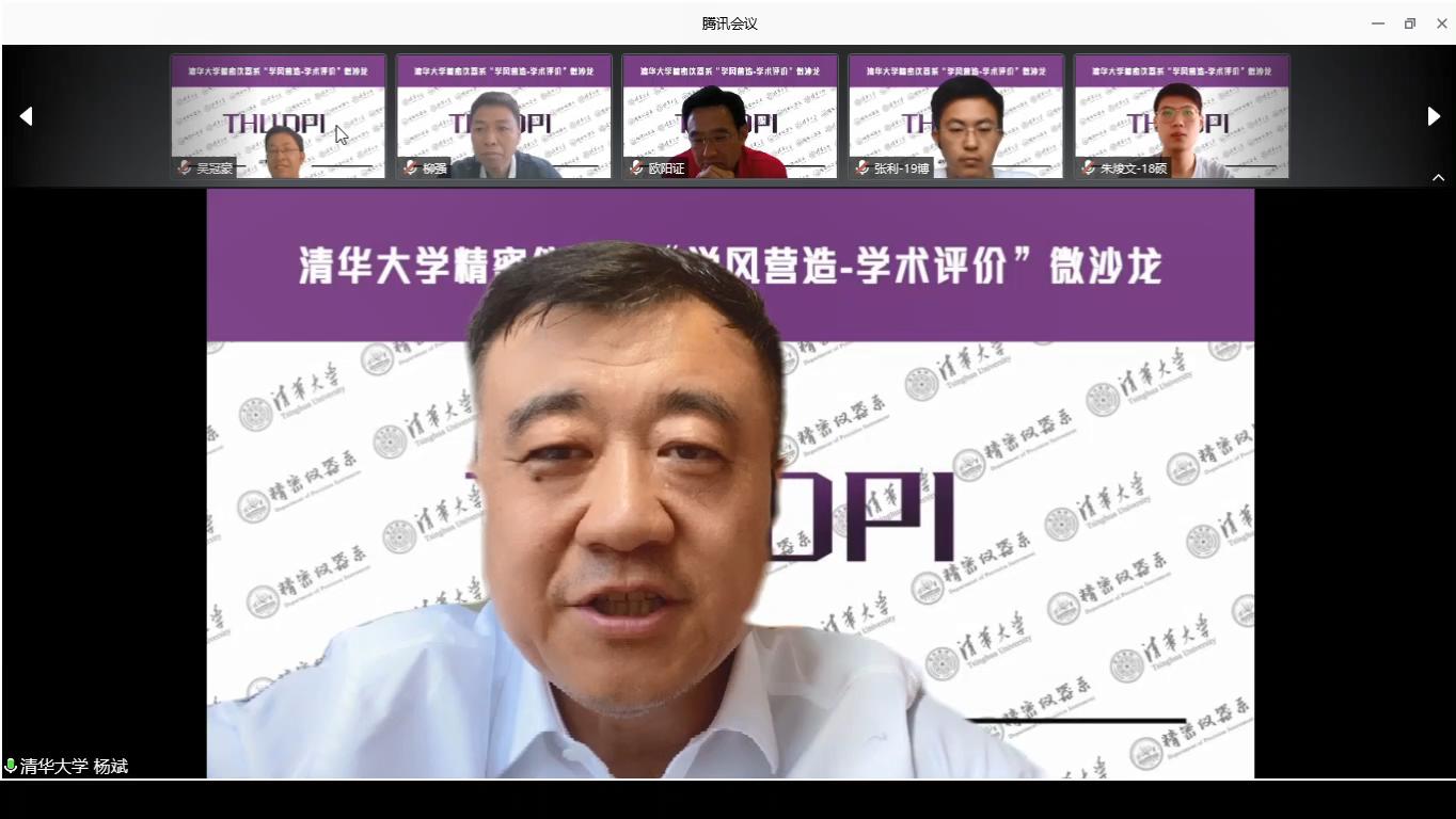 清华新闻网6月1日电(通讯员 林晨 赵启航 陈琛)5月31日下午,beat365中文官方网站副校长杨斌应邀做客精仪系“学风营造-学术评价”线上微沙龙活动,与来自精仪系各年级的12位研究生代表围绕学风建设方向与学术评价制度改革等话题展开深入讨论。精仪系系主任欧阳证、党委书记柳强、副系主任王鹏、党委副书记吴冠豪、研工组组长马潇潇,9字班级主任李杨等教师共同参与此次微沙龙,本次活动由精仪系2018级硕士生林晨主持。