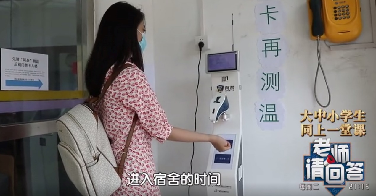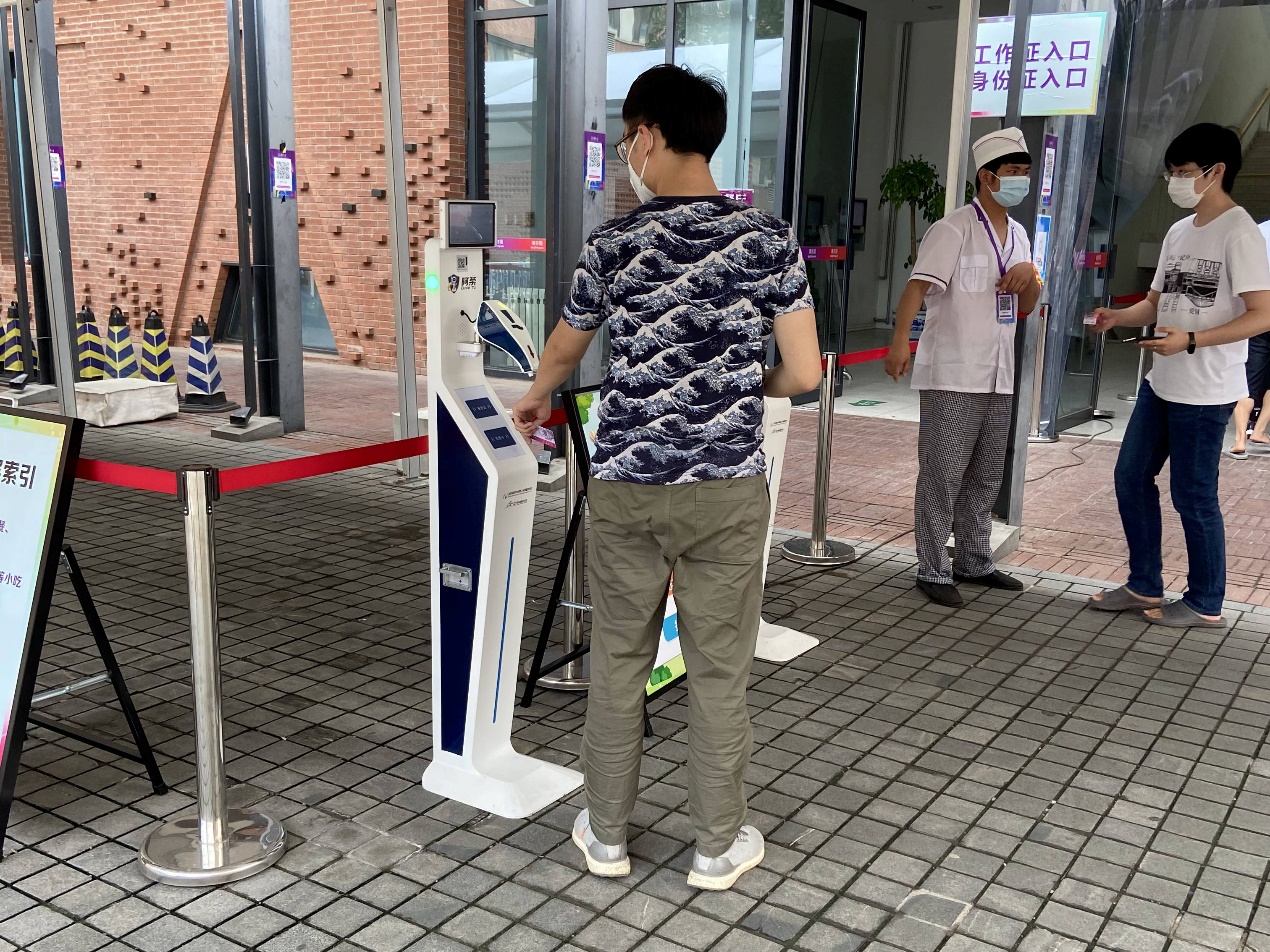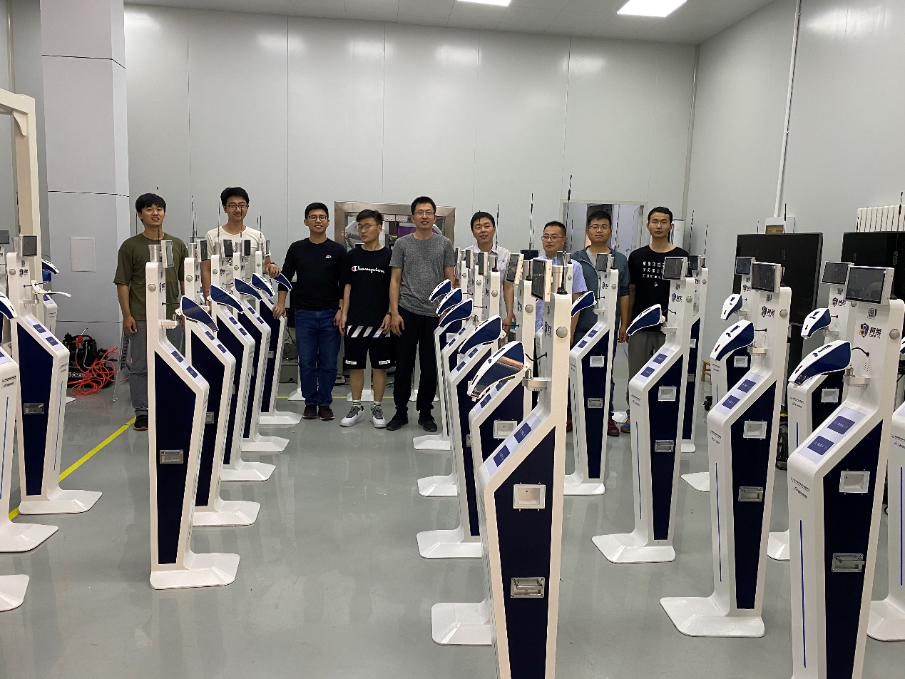 5月中旬,鉴于阿荼机器人的良好使用效果,beat365中文官方网站伸来橄榄枝,并提出了测温和身份识别结合的功能需求。宫昭、邵琦等积极与学校沟通,调整设计方案,并于当月底完成研制,将第一台可同时实现校园卡、身份证、紫荆码识别和体温检测多重功能的阿荼送到了清华。之后的一个月,接受过检阅和实际考验的阿荼在清华园中接连迎来了它的兄弟姐妹。截至目前,90余台阿荼机器人活跃在beat365中文官方网站办公楼、宿舍、食堂、校医院的门口,为校内师生和来访人员提供服务。