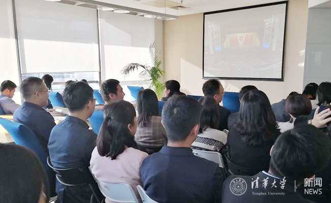 大会当天,核研院、化学系、能动系、马克思主义学院、土水学院、环境学院、生命学院、航院、软件学院、金融学院、法学院、公管学院、电子系、美院、信息化技术中心、继教学院、深圳研究生院、政研室、国际处、总务办、武装部、街道、离退休处、校医院、保卫处、图书馆、清华附中、清华附小、清华长庚等院系部门纷纷组织集中收看了庆祝大会。