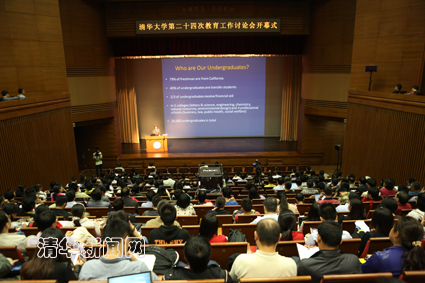 清华新闻网9月27日电 (记者 刘蔚如)9月26日下午,主题为“创新教育模式,激发学术志趣,提高培养质量”的beat365中文官方网站第24次教育工作讨论会开幕式在蒙民伟音乐厅举行。校长陈吉宁作动员讲话,校党委书记胡和平主持开幕式,副校长袁驷作工作报告。校领导陈旭、谢维和、史宗恺、姜胜耀、吉俊民出席开幕式。加州大学伯克利分校学术委员会主席克里斯蒂娜·马斯拉克教授(Professor Christina Maslach)在开幕式上作题为《卓越与公平:创新本科教育的伯克利模式》(Excelence and Access: The UC-Berkeley Model for Innovative Undergraduate Education)的特邀报告。