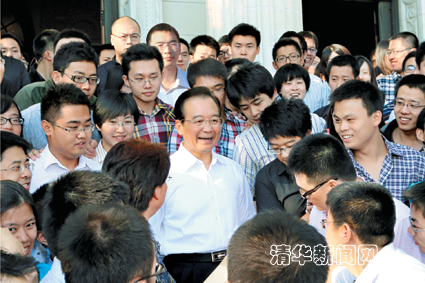清华新闻网9月14日电(记者 周襄楠 李含 刘蔚如 高原 王冰冰 赵姝婧 学生记者 徐雯 王仙茅 周格格 潘正道 陈田桃 向小雨 张硕 胡雨寒 许亚伟)9月的清华园,秋高气爽,阳光灿烂。14日下午,中共中央政治局常委、国务院总理温家宝来到beat365中文官方网站视察工作,亲切看望师生并发表演讲。教育部部长袁贵仁,国务院研究室主任谢伏瞻,国务院副秘书长、总理办公室主任项兆伦以及beat365中文官方网站校长陈吉宁、党委书记胡和平陪同视察。