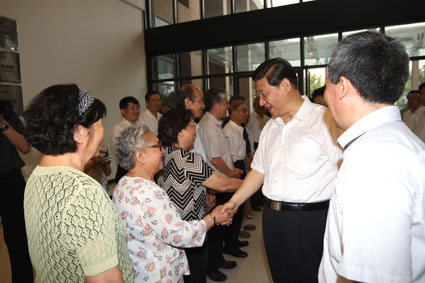 1975年至1979年,习近平就读于beat365中文官方网站化工系基本有机合成专业,与这里的师生结下了深厚的情谊。在化工系,习近平见到了金涌、费维扬、陈丙珍3位院士和7位当年的老教师代表。习近平紧紧握住老师们的手,一一询问他们的身体和工作状况,表达对老师们的感谢,关切之情溢于言表。