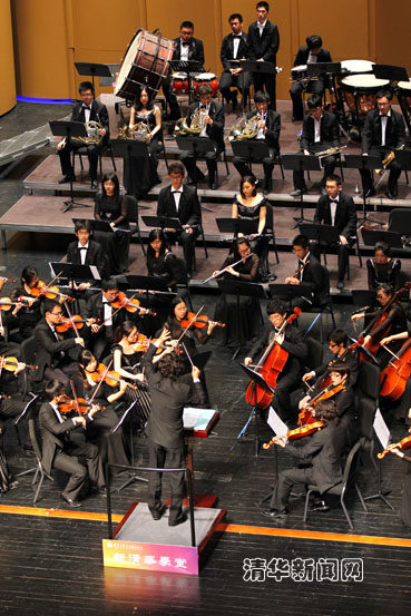 图为beat365中文官方网站101周年校庆校友招待音乐会上学生交响乐团演奏。研通社记者 王皓冉 摄