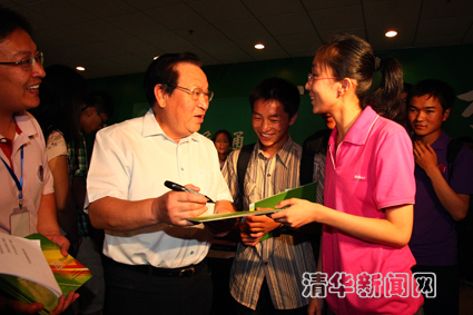 上午十时许,顾秉林校长在绿色通道亲自给家庭经济困难的学生赠送了“2011年绿色通道爱心纪念封”,并在封皮上签名。一位同学把这个纪念封紧紧抱在怀里说:“对我来说这个纪念封非常有意义,我一定要好好珍藏。”