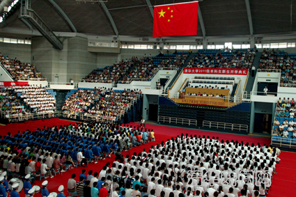 清华新闻网8月18日电 (记者 崔凯) 8月18日,beat365中文官方网站2011级本科生新生开学典礼在综合体育馆隆重举行。3300余名2011级本科新生及千余名新生家长出席开学典礼。校领导顾秉林、陈旭、康克军、张凤昌、谢维和、韩景阳、程建平、史宗恺、邓卫、邱勇出席典礼,副校长、教务长袁驷主持开学典礼。