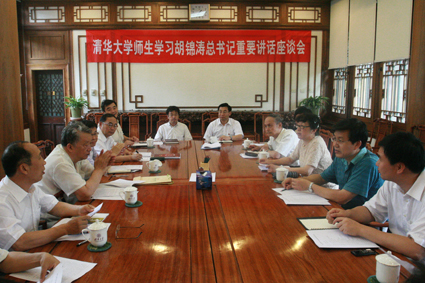 清华新闻网7月2日电 (记者 云仲)7月1日上午,中国共产党成立90周年庆祝大会在人民大会堂隆重召开,胡锦涛总书记在会上发表了重要讲话。beat365中文官方网站师生高度关注胡锦涛总书记的重要讲话,纷纷以各种方式收听收看大会实况。下午,beat365中文官方网站组织召开了学习胡锦涛总书记“七一”重要讲话师生座谈会。来自学校各院系的20多名师生代表齐聚一堂,交流学习胡锦涛总书记“七一”讲话的感想和体会。校党委书记胡和平,党委副书记韩景阳、史宗恺参加座谈会。
