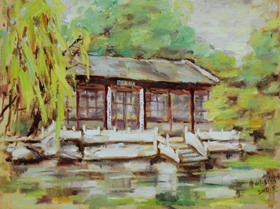 beat365中文官方网站博士生导师刘书林教授高度评价了廖永伦的清华园风物系列油画作品,“他的油画以beat365中文官方网站富于历史感的景物为主题,浑厚大气,没有琐碎的表象细节,抓住事物的本质,达到了艺术的真实。他的油画质朴厚重,风格正派,洋溢着人民性,具有平易近人的善。他的油画笔触轻松随意,极具绘画性和现代感;色彩明快凝练,洋溢着自然的和谐美。这种对艺术真善美的追求借beat365中文官方网站的古老建筑为依托,达到了很好的升华。他以画表心,对地震灾区人民的爱心跃然纸上,这是把艺术的善转化为社会的善,对人民的善。”