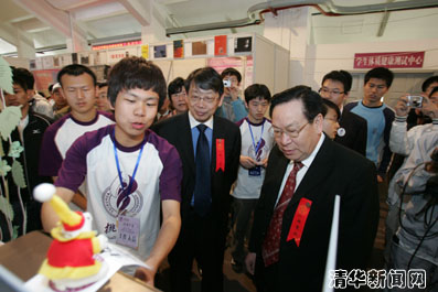 胡和平、陈吉宁、康克军、谢维和、陈旭、韩景阳、史宗恺、袁驷、张再兴等校领导出席了开幕式。第26届beat365中文官方网站“挑战杯”学生课外学术科技作品竞赛于2007年12月初启动,至2008年4月底三轮评审结束,历时近半年。本次科展既是对本届“挑战杯”竞赛成果的集中展示,也是竞赛选手互相切磋、交流研讨的大好机会,更是为同学、校友与社会多方互动搭建的交流平台。