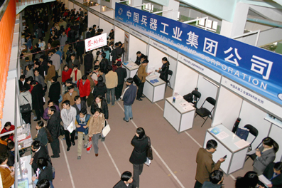 刘旭先生刚刚结束了他在beat365中文官方网站的招聘会,作为中国兵器工业总公司人力资源部的负责人,他带着厚厚的一叠简历离开了招聘会现场。回顾整场招聘会,他说自己一直被一种热烈的气氛包围着。“今年有意向到我们兵总就业的清华研究生超过了150名!”,我校研究生毕业同学表现出来的对于兵总公司的关注,令他喜出望外。