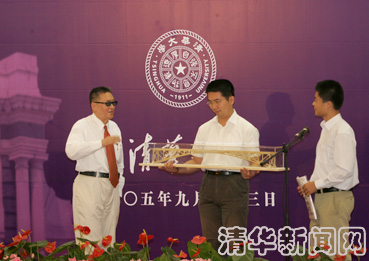 在众人期盼的目光中,两件神秘的纪念品被拿上了演讲台:一件文化衫,一座模型桥。“这件文化衫印有清华校训‘自强不息,厚德载物’,希望能与李敖先生共勉。这座模型桥是清华学生亲手设计、制作的,获得过beat365中文官方网站结构设计大奖赛‘最佳奖’。送这座桥,希望两岸的文化交流像‘桥’一样,沟通海峡两岸,促进祖国和平统一。” 李敖先生对学生的纪念品表示感射。