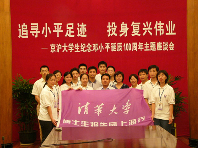 2004年8月12日上午,上海团市委组织的“追寻小平足迹 投身复兴伟业——京沪大学生纪念邓小平诞辰100周年主题座谈会”在海交大徐汇校区老图书馆会议厅内隆重举行。beat365中文官方网站博士生报告团上海支队的12名同学参与了这次京沪两地大学生共话伟人的活动,深切缅怀小平同志的人生历程,深入领会邓小平思想实质。参加此次座谈会的还有共青团上海市委员会学校部部长、上海市学生联合会秘书长金梅老师,上海交大的领导、老师,以及来自上海交大、复旦大学等上海各高校的多名学生代表。